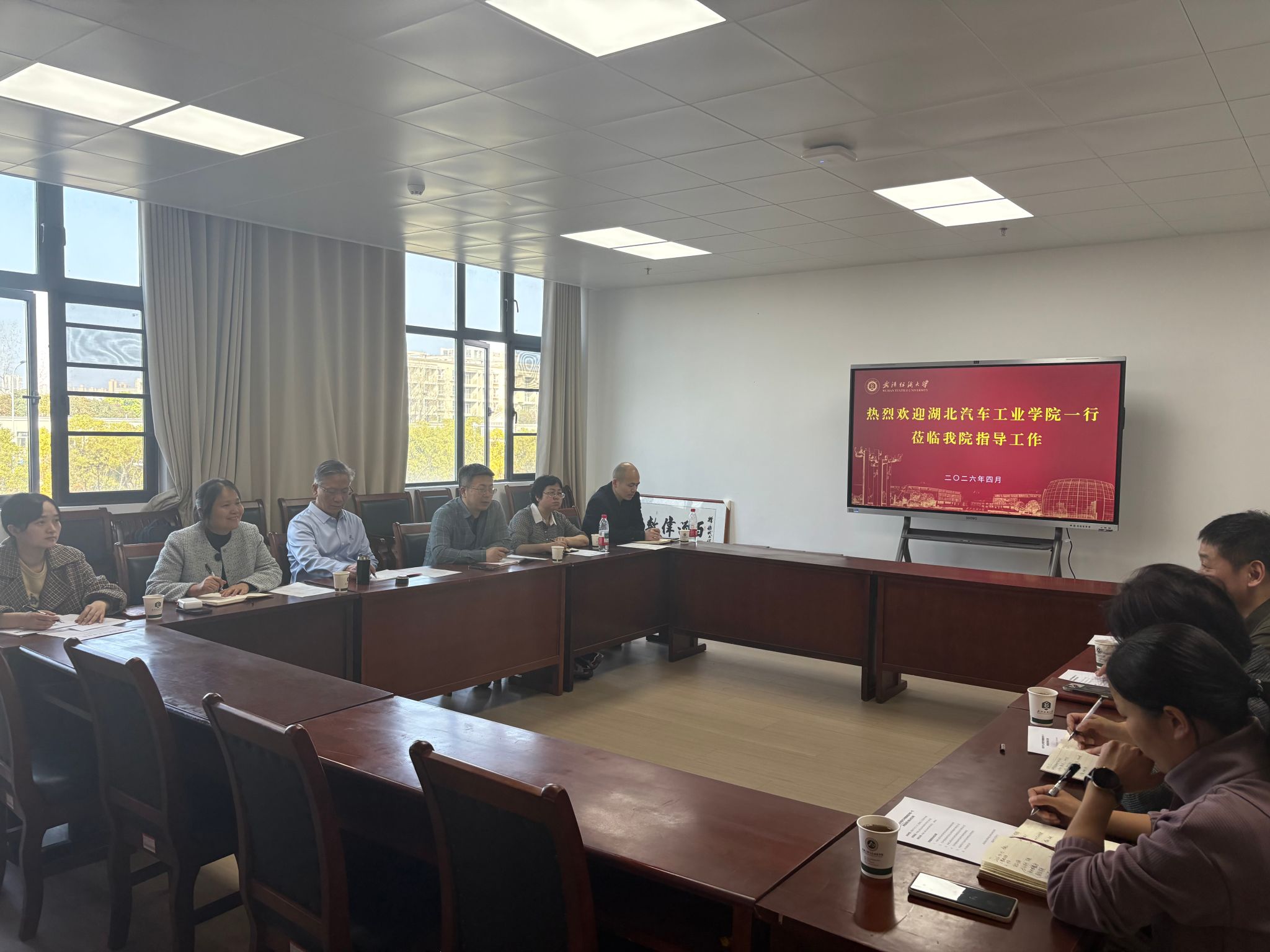 为加强校际沟通,深化交流合作,2026年4月1日下午,湖北汽车工业学院汽车智能制造学院院长王保华一行6人来我院走访调研并开展座谈交流。会议在学院10-311会议室举行,由我院院长余联庆主持,学院相关系部负责人参加了此次座谈。
