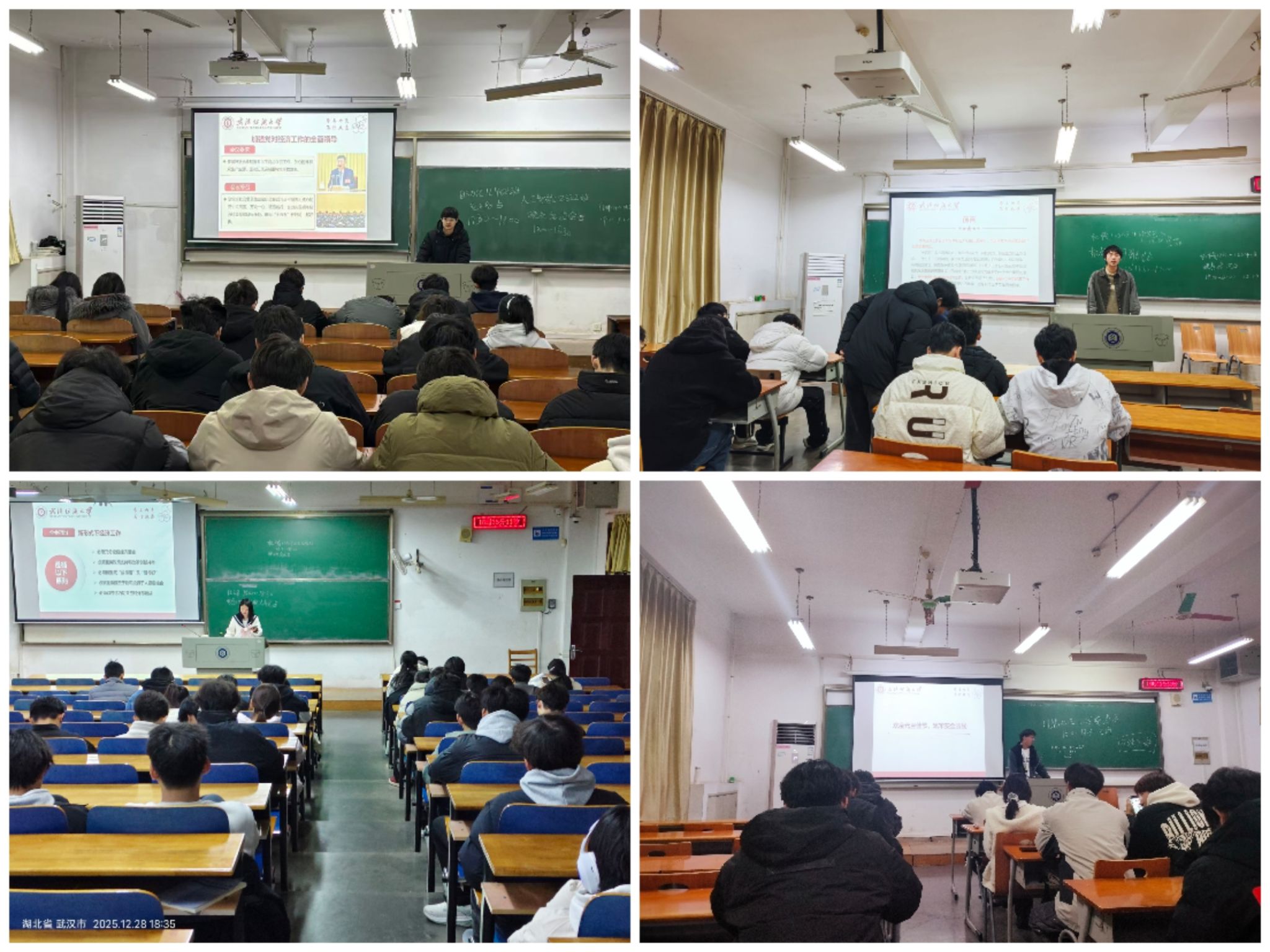 班会上,老师首先带领同学们学习中央经济工作会议精神,解读当前国家经济发展成就与政策走向,引导同学们立足时代背景,树立大局意识,将个人发展与国家建设相联系。随后,老师介绍了元旦的由来、历史渊源与传统习俗,帮助同学们增进对中华优秀传统文化的认同。此外,在安全教育环节,老师重点从交通出行、消防安全、饮食卫生及网络安全等方面进行了全面提醒,引导学生提升防范意识,合理安排假期生活。